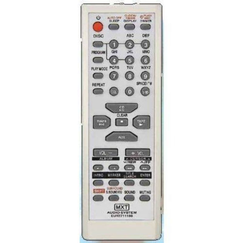 Controle Remoto para Aparelho de Som Panasonic Modelos: EUR7711150 / SA-PM19 / SA-PM193 / SC-AK220 / SC-AK220LB-S / SC-PM19 / SC-PM193 / SC-PM19K Embalagem: Unitário - Pilhas não Incluído Fabricante: SKY / LE / FBG / MGSI / RBR / ETC Não precisa programação, apenas colocar as pilhas e usar Código: 780370